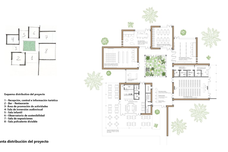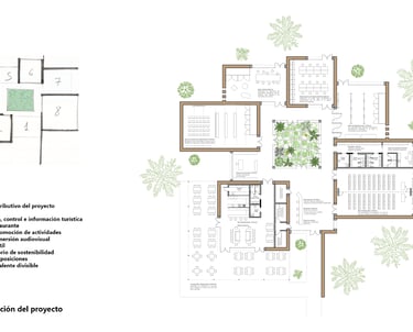 Usos: aulas, salas de conferencias, sala de exposiciones, ludoteca infantil, sala de proyección audiovisual, sala mediateca, restaurante y patio de esparcimiento social.